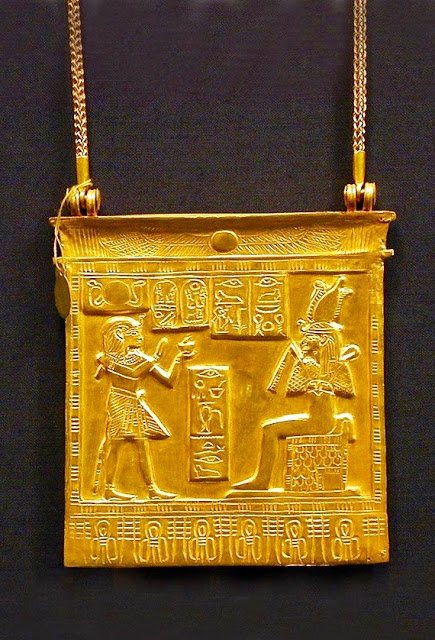 Pectoral of Amenemope – gold Origin: Tanis – Tomb Amenemope discovered by Pierre Montet, April 16, 1940 Exhibited at the Egyptian Museum in Cairo – JE 86038