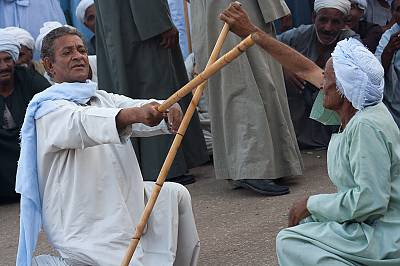 Tahtib is the term for a traditional stick-fighting martial art originally named fan a’nazaha wa-tahtib, “the art of being straight and honest through the use of a stick”. The original military version of tahtib later evolved into an Egyptian folk dance with a wooden stick. It is commonly described in English as a “stick dance”, “cane dance”, “stick-dancing game”, or as ritual mock combat accompanied by music. Nowadays, the word tahtib encompasses both martial practice and performance art. It is mainly practised today in Upper Egypt. Tahtib is regularly performed for tourists in Luxor and Aswan. Stick fighting