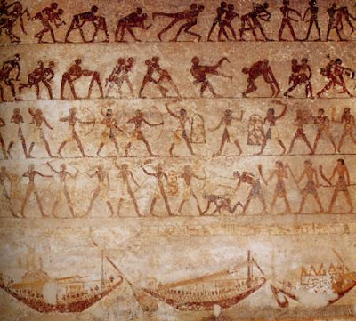 Having become choreography, sporting activity and festive entertainment, the tahtib originates from the Pharaonic era. There are, says the website tahtib.com: “countless traces (engravings and drawings) left on the walls of the tombs of ancient Egypt, from the Old Kingdom to the arrival of Alexander the Great in Egypt (…) The codes of the tahtib are established around 3200 BC, as shown by the excavations carried out by the famous Egyptologist Zahi Hawass in the region of Abu Sir (… ).” The engravings discovered there feature tahtib, among other sporting activities, featuring instructors and their young students.