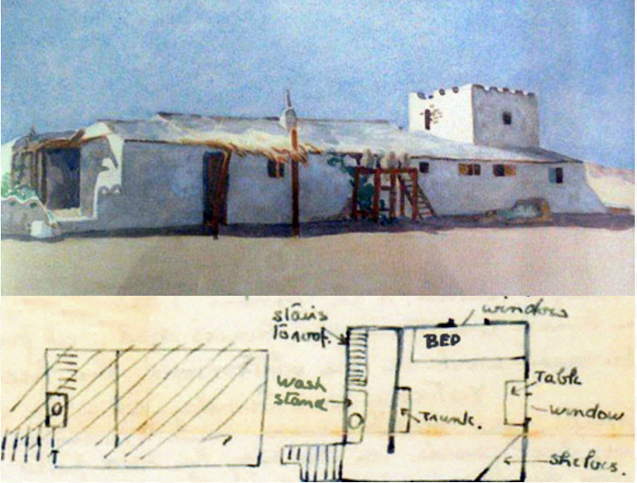 The time spent in Abydos was undoubtedly one of the happiest periods of Myrtle’s life. In the small, low-rise house she lived inβand which we can see in one of her paintingsβshe had: “a housekeeper whom she nicknamed Nannie and a villager, called Sadiq, who served as her advisor, bodyguard, and personal assistant. Life was frugal, however, and Myrtle took great care not to exceed their allotted budget.”